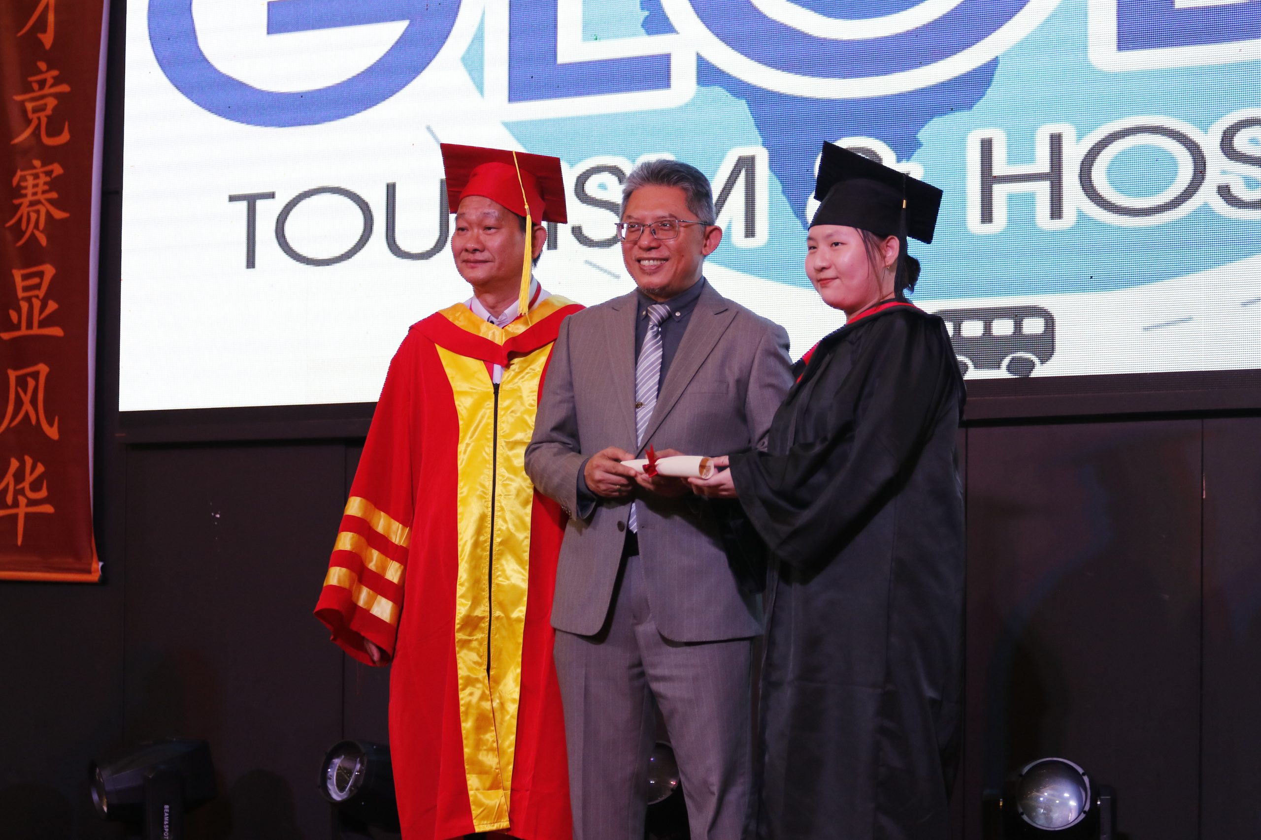 A total of 186 graduates from the Johor Bahru, Muar, Kuala Lumpur, and Ipoh branches gathered to celebrate the completion of their learning journey. The ceremony was witnessed by representatives from the Ministry of Tourism, Arts and Culture, the Ministry of Human Resources, alongside the academy’s principal, lecturers, and distinguished guests.